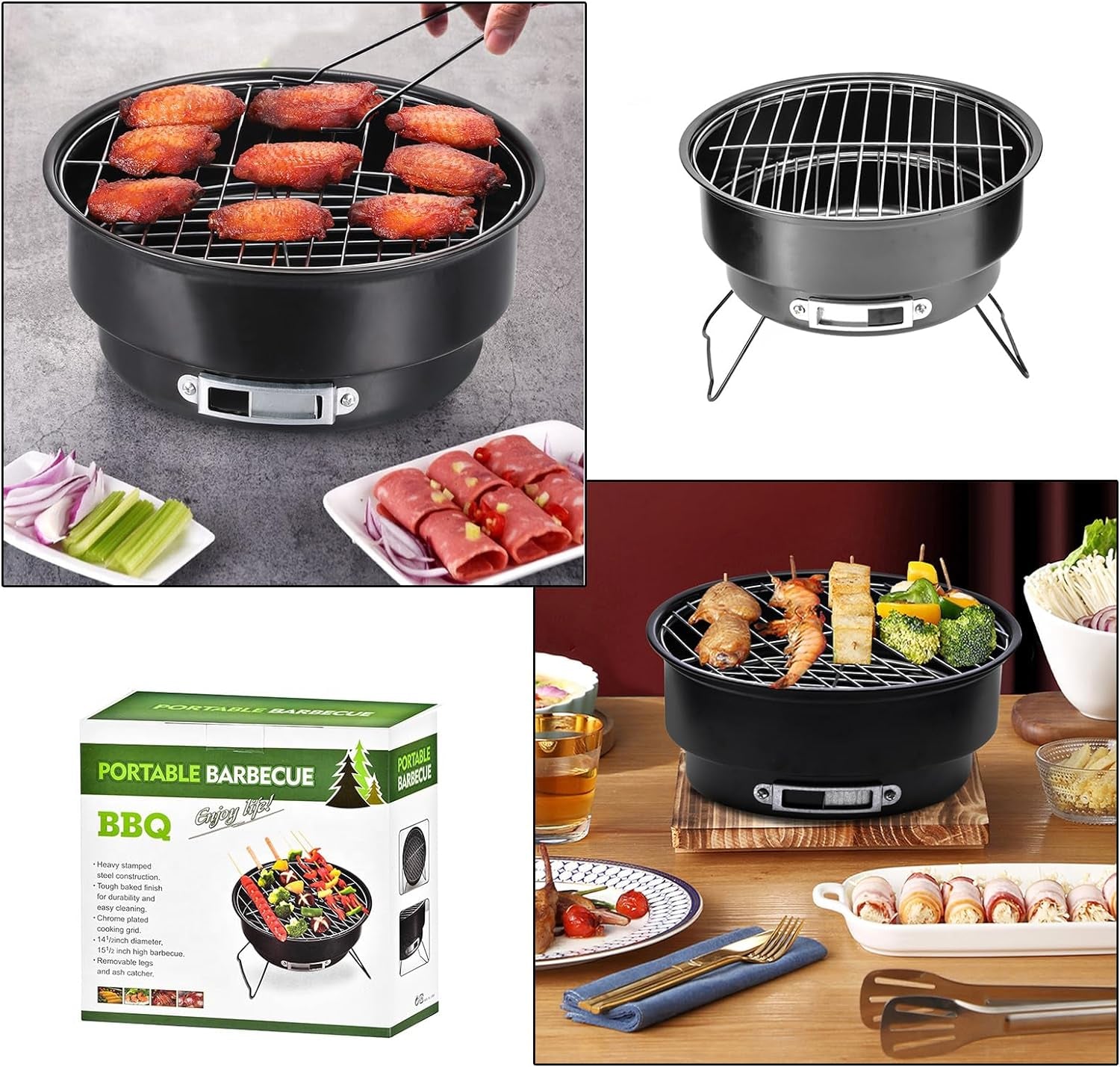 - The tripod can be folded and the handle design saves space. making it perfect for storing this barbecue charcoal grill in your small kitchen or suitcase. making it easy to carry anywhere.