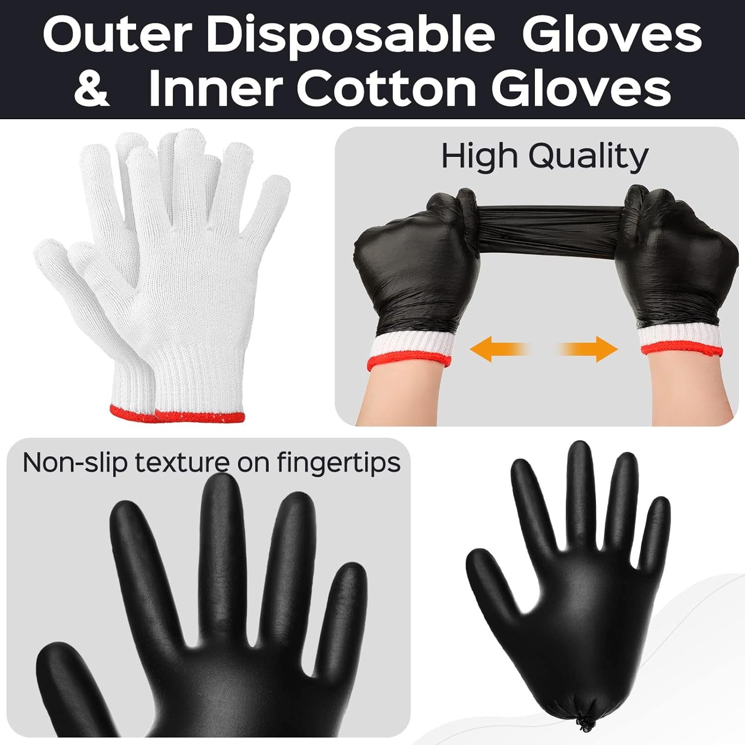 - Enough for You to Use: the BBQ gloves kit includes 100 pieces of disposable black nitrile grilling gloves and 2 pairs of reusable cotton glove liners. enough quantity for your daily grilling and cooking needs