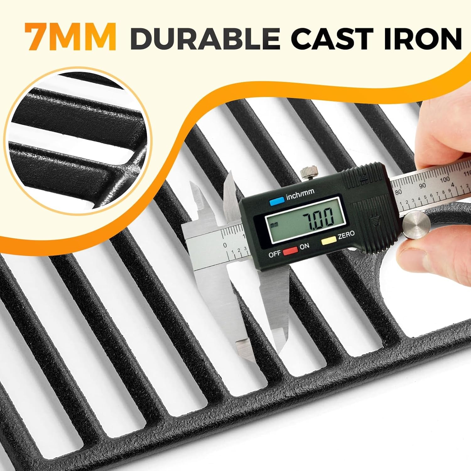 - 【Safety & Durability】These grates are built to withstand high temperatures without warping. ensuring safe and reliable use. The sturdy cast iron construction is rust-proof and designed for long-term outdoor grilling. Always preheat on high for 15 minutes and brush clean with a grill brush for best results