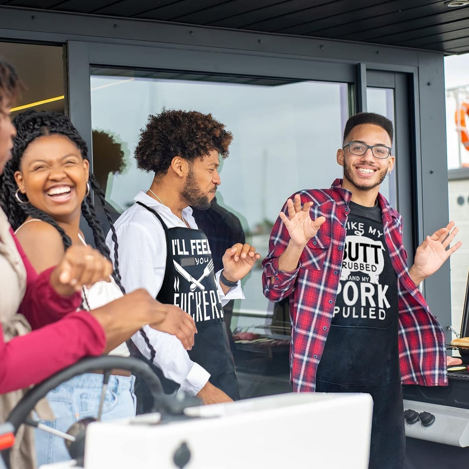 Unique graphic slogan2 piece - apron allows you to change and use at any time. When you are cooking. grilling. BBQ. baking. gardening or doing housework. you will look cooler | With an adjustable neck strapTwo black fun aprons are suitable for most people because they have adjustable neck straps. You can adjust the shoulder strap to the length you like. | Waterproof MaterialHigh-grade waterproof material apron can effectively play the role of waterproofing and other liquids will not be quickly absorbed. Protect your clothes and skin from stains and marks. | 2 Large PocketsThe interesting black apron is specially designed with 2 large pockets. It is very suitable for storing your mobile phone. spices. eggs. tools or anything that can be used in the process of cooking. grilling. grilling. baking. gardening. etc. |