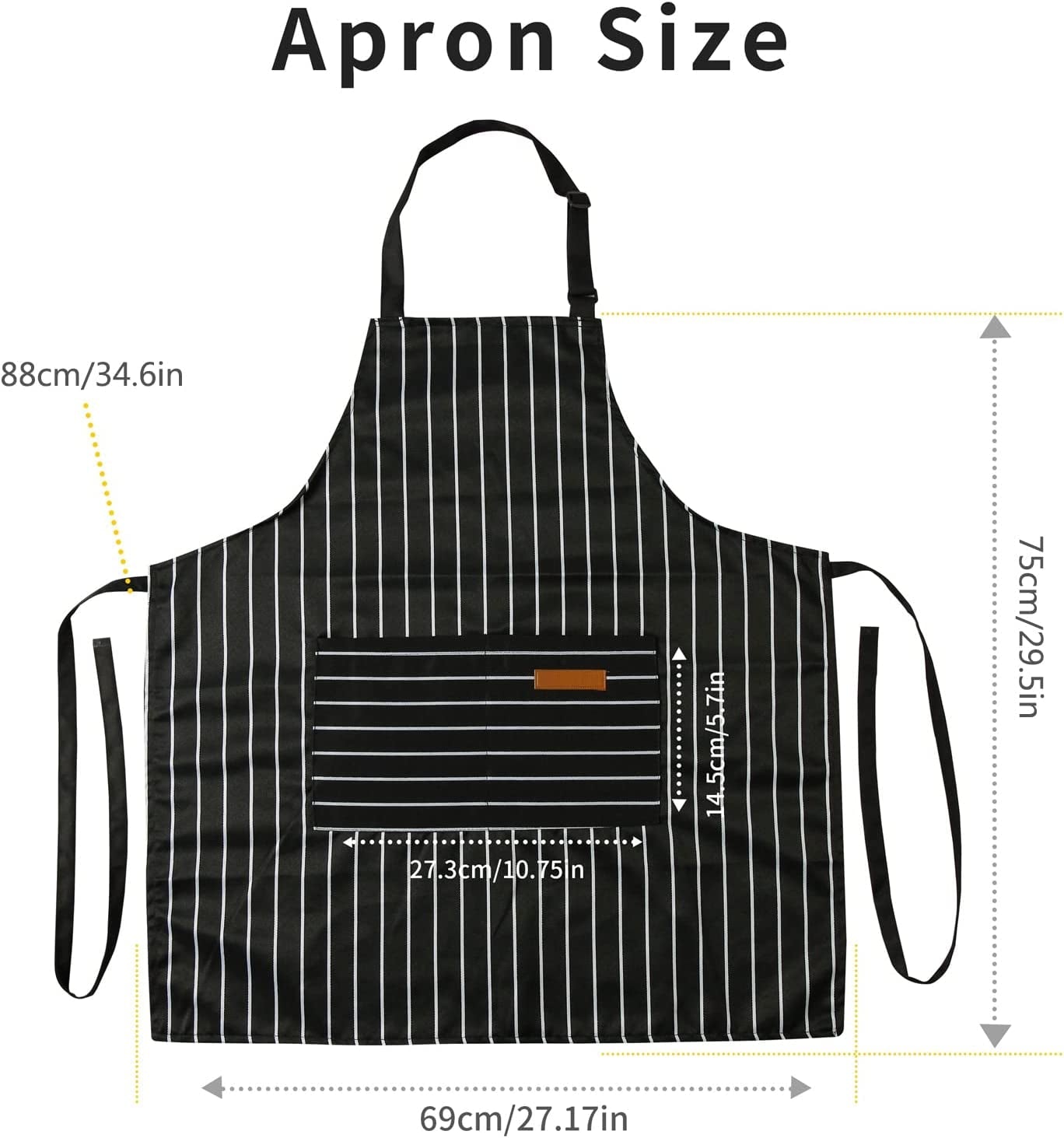 2 Pieces Kitchen Cooking Aprons. Cotton Polyester Blend Adjustable Bib Aprons with 2 Pockets for Women Men Chef Chef (Black/Brown Stripes. 2)