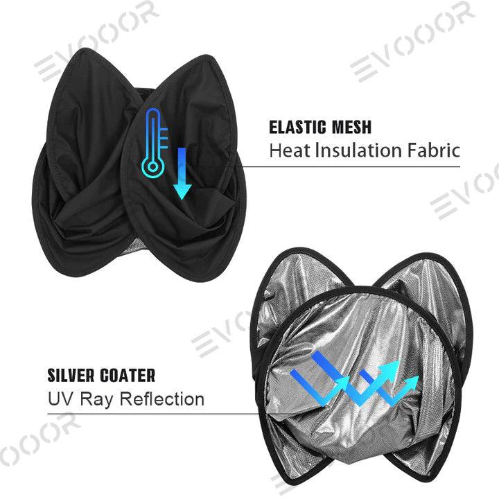 - Effective Heat Insulation- The front side made of reflective silver-coated cloth to effectively block 97% of harmful ultraviolet rays from entering the car. The transparent black-plated cloth on the reverse side effectively blocks heat. It can prevent the temperature inside the car from being too high. and does not affect people in the car to enjoy the scenery outside the car.