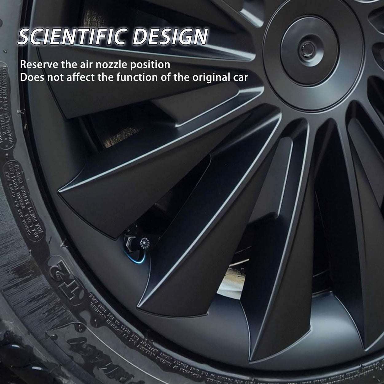 - These wheel covers exude a sleek matte black tone. imbuing them with a sophisticated allure. Their straight blade style design adds a dash of panache. ensuring your Model 3 Highland stands out with refined elegance.