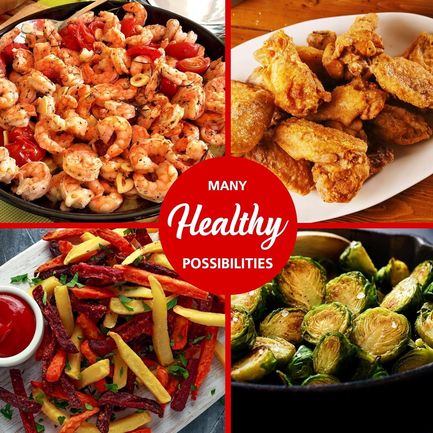 Serve up a banquet of delicious fried foods with the Brentwood 3.2 Qt. 1.200 Watt Electric Air Fryer with Timer and Temperature Control. This fryer cooks quickly and evenly without the guilt of extra fat and calories. It requires little-to-no oil to beautifully cook french fries. onion rings. chicken wings. steak. roasted veggies. and more. Use the quick-reference temperature guide and the 30-minute timer with auto-shutoff for fast. crispy results. The Black/Silver fryer's cool-touch. removable fry basket makes serving easy. The frying pan and basket is made with a nonstick surface for effortless cleanup.