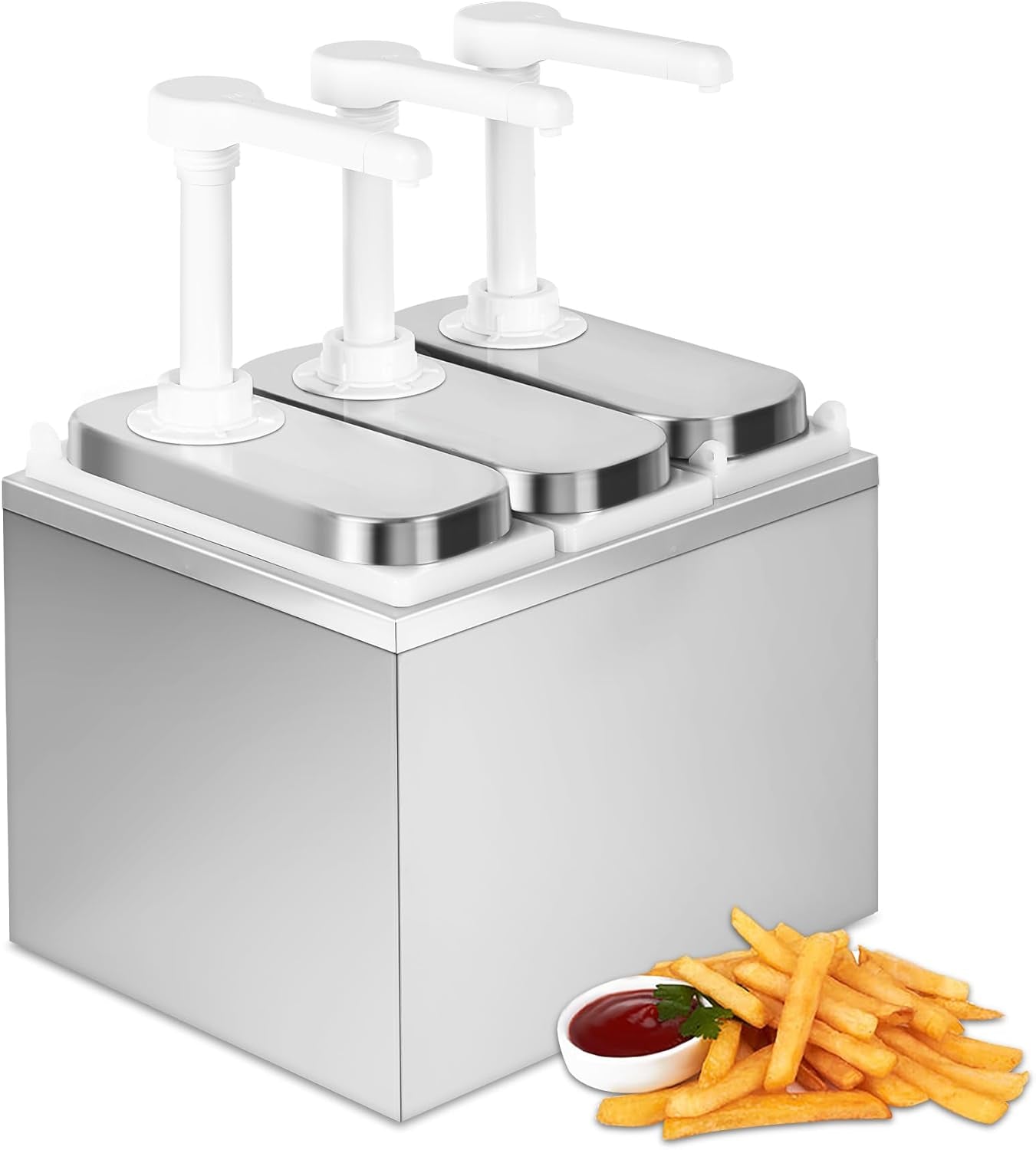 3.2Quart Condiment Pump Station Stainless Steel Sauce Dispenser Pump Condiment Pump Dispenser with 3 of 1.1 Quart Jars