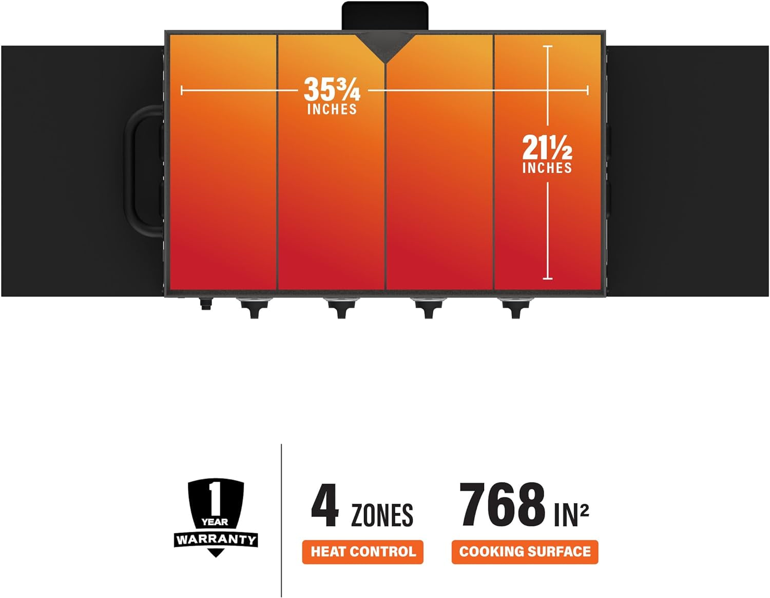 - Restaurant style cooking - with 720sq inches of flat top grilling. This griddle is perfect for breakfast; lunch and dinner- Cook eggs; pancakes; Quesadillas; grilled cheese; steak. Potatoes; Teppanyaki style foods and more- Also enjoy a bottom shelf and two side shelves for food storage and prep.