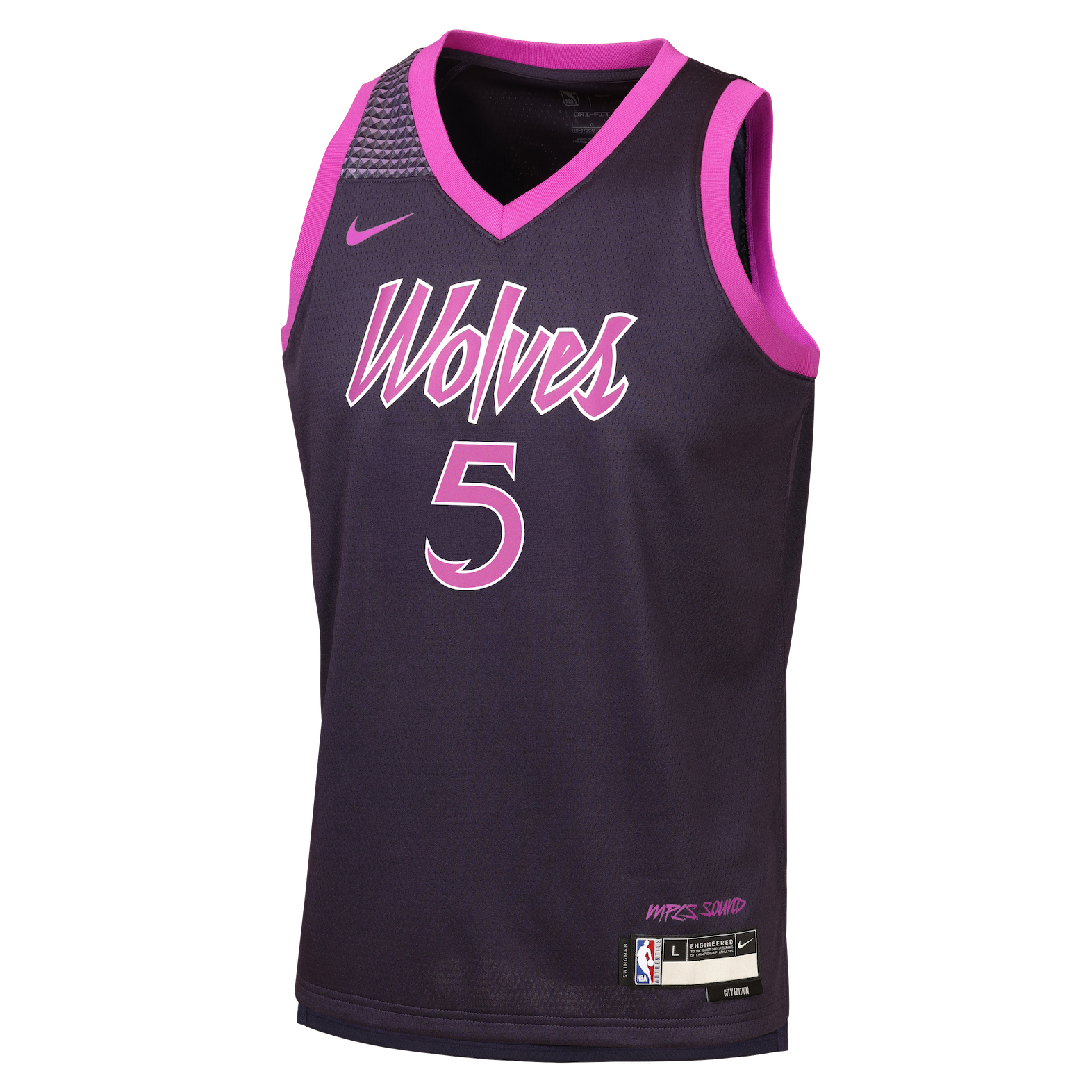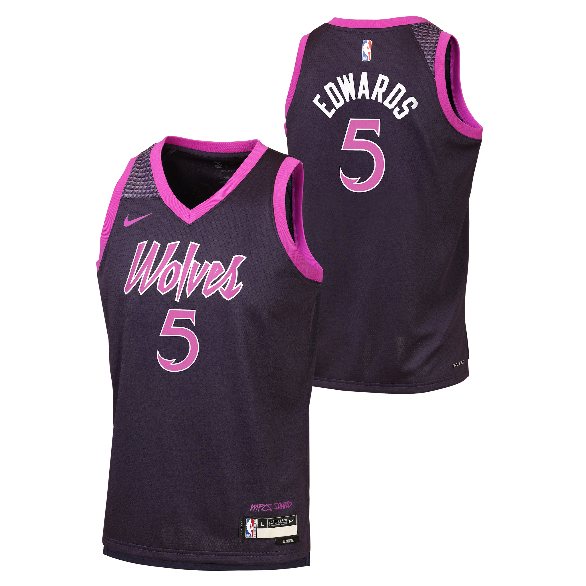 Have your little ballers rep their squad and cheer on their favourite star with the Anthony Edwards Minnesota Timberwolves 2025-2026 City Edition Swingman Youth Nike NBA Purple Swingman Jersey. which features sweat-wicking double-knit fabric that is lightweight yet durable - designed specifically to help keep the little ballers cool. heat applied twill name and numbers with no stitch as well as design details that demonstrate your love for the game!