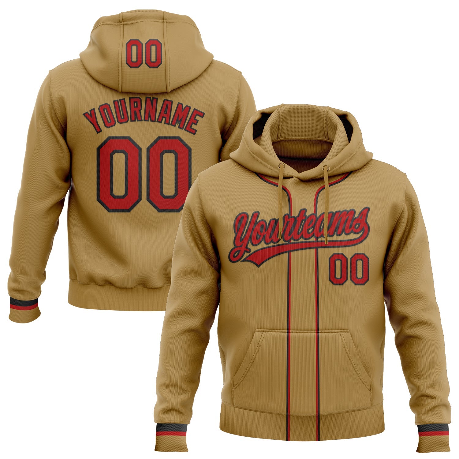 Custom Stitched Old Gold Red-Black Baseball Pullover Sweatshirt Hoodie