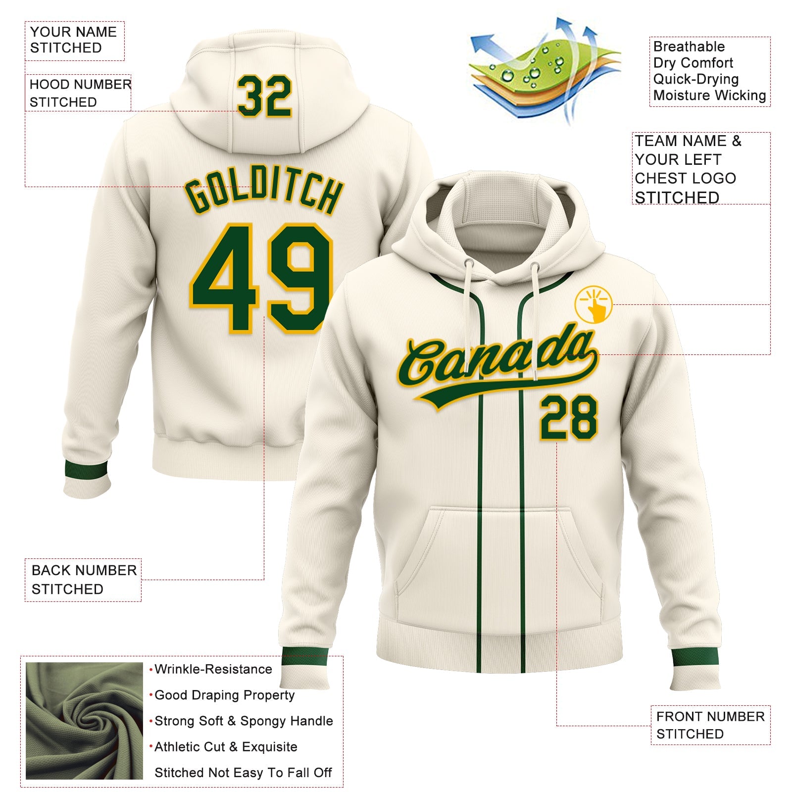 Custom Stitched Cream Green-Gold Baseball Pullover Sweatshirt Hoodie