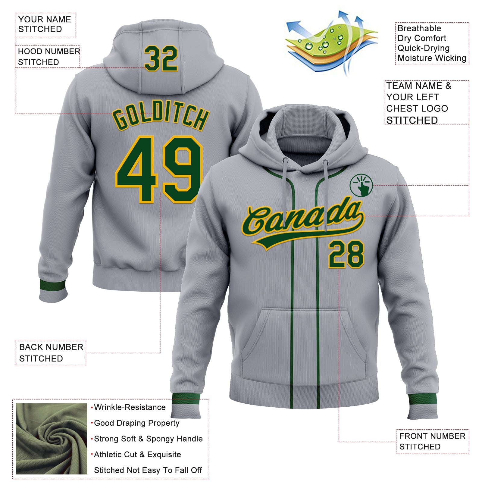 Custom Stitched Gray Green-Gold Baseball Pullover Sweatshirt Hoodie