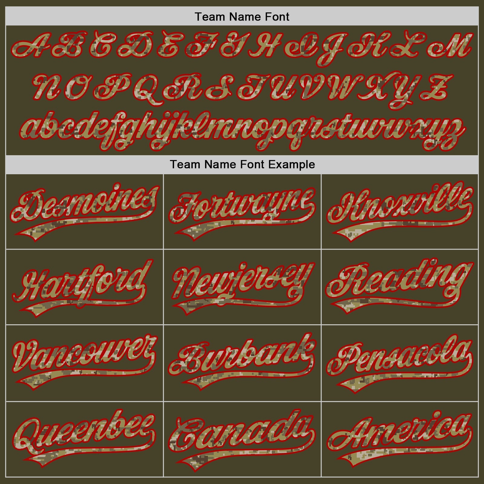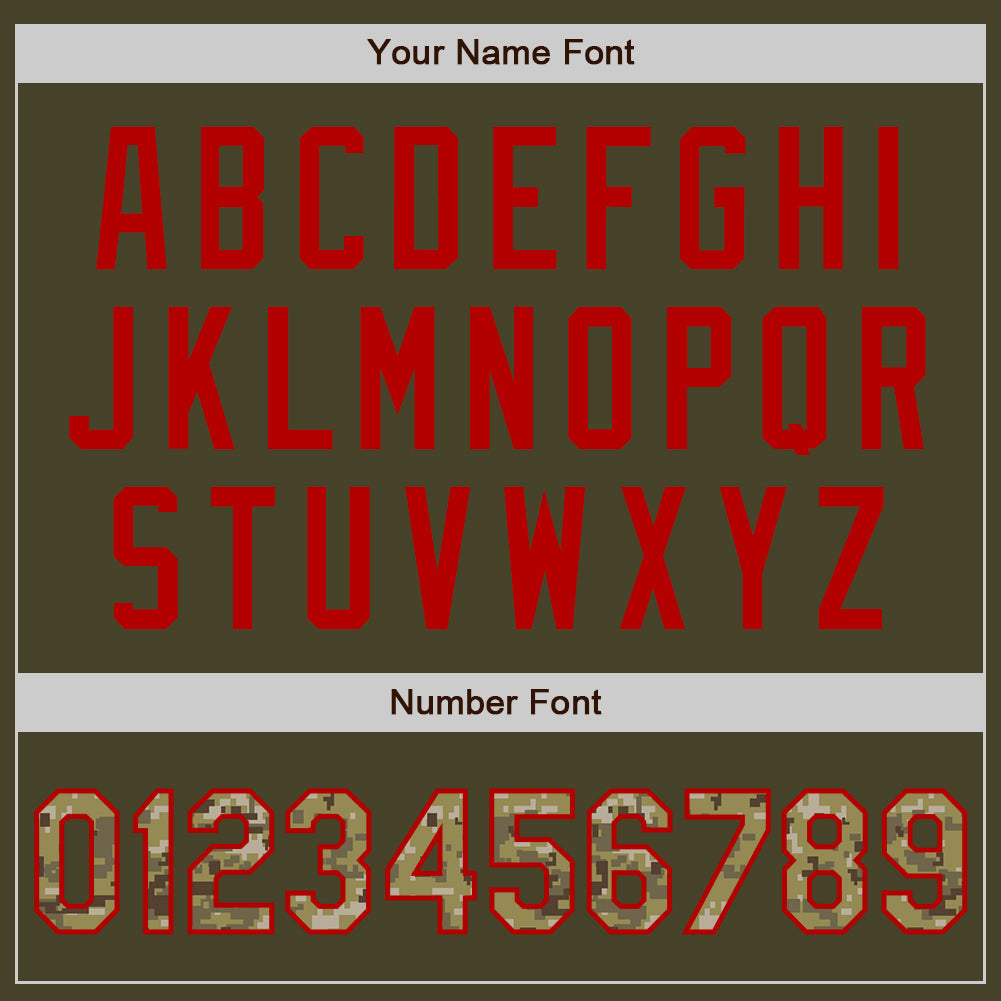 Custom Stitched Olive Camo-Red Baseball Pullover Sweatshirt Hoodie