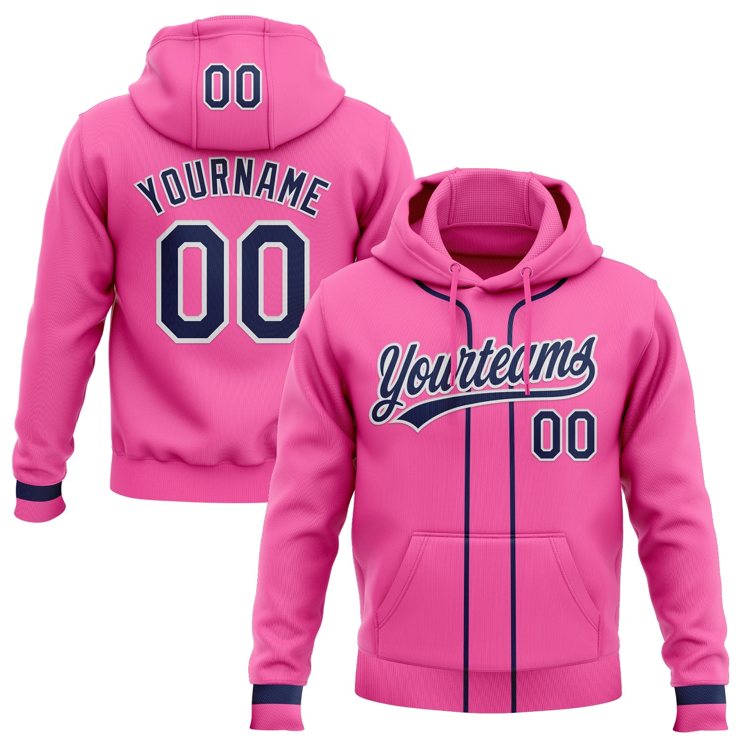 Custom Stitched Pink Navy-White Baseball Pullover Sweatshirt Hoodie