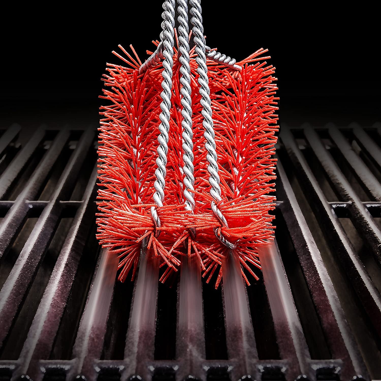 The cool clean 3x360 brush offers a cleaning experience like no other. Exclusive red bristles for safe cleaning are made from rugged industrial-grade nylon that will never rust. Effective. grit-infused bristles clean both the top & side surfaces of your grill grates. The durable. lab-tested bristles exceed 50.000 cycles without breaking. offering you a time-tested cleaning experience for your grill.