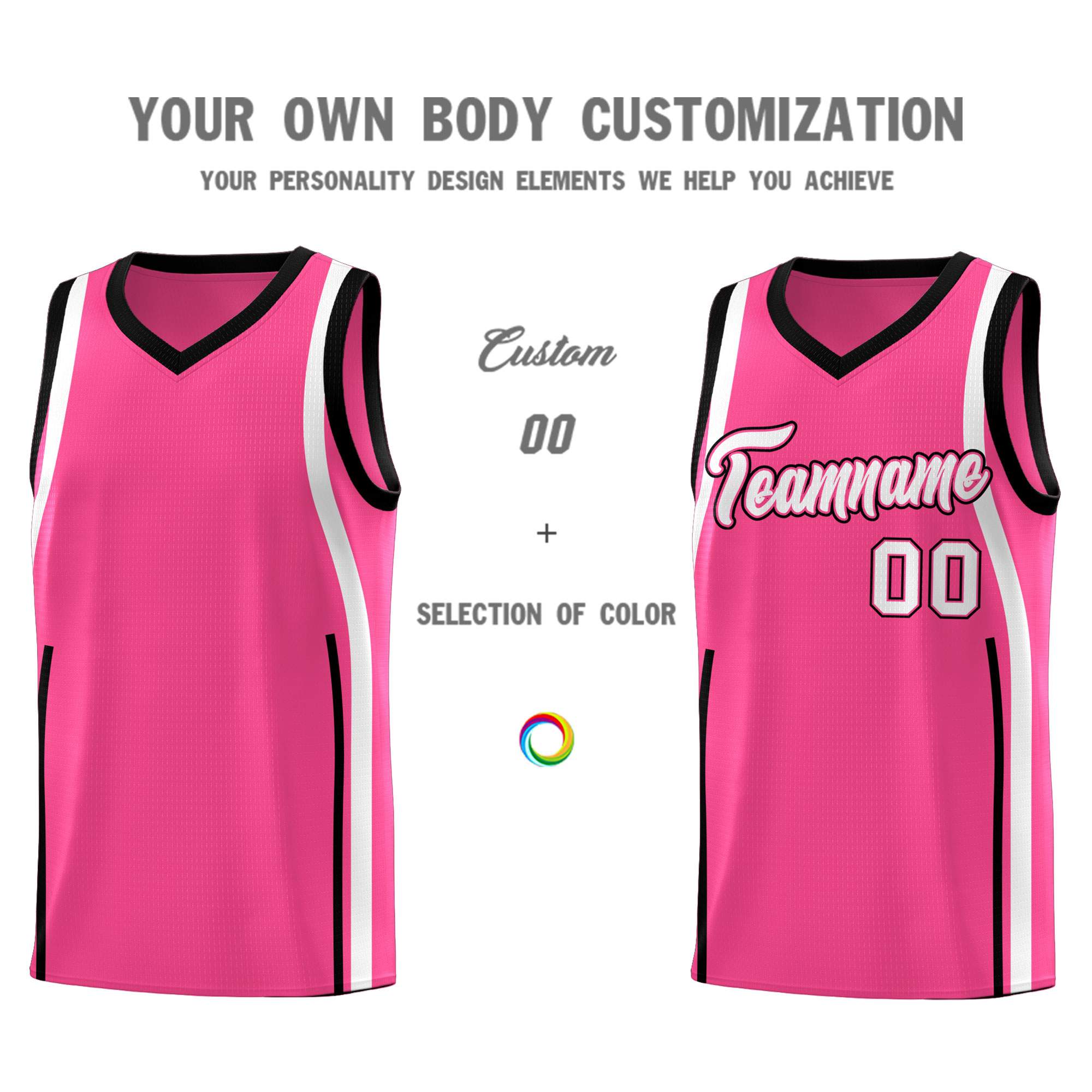 Represent your distinct look with this Custom Pink Black-White Ribbon Pattern Basketball Kits from our web.
