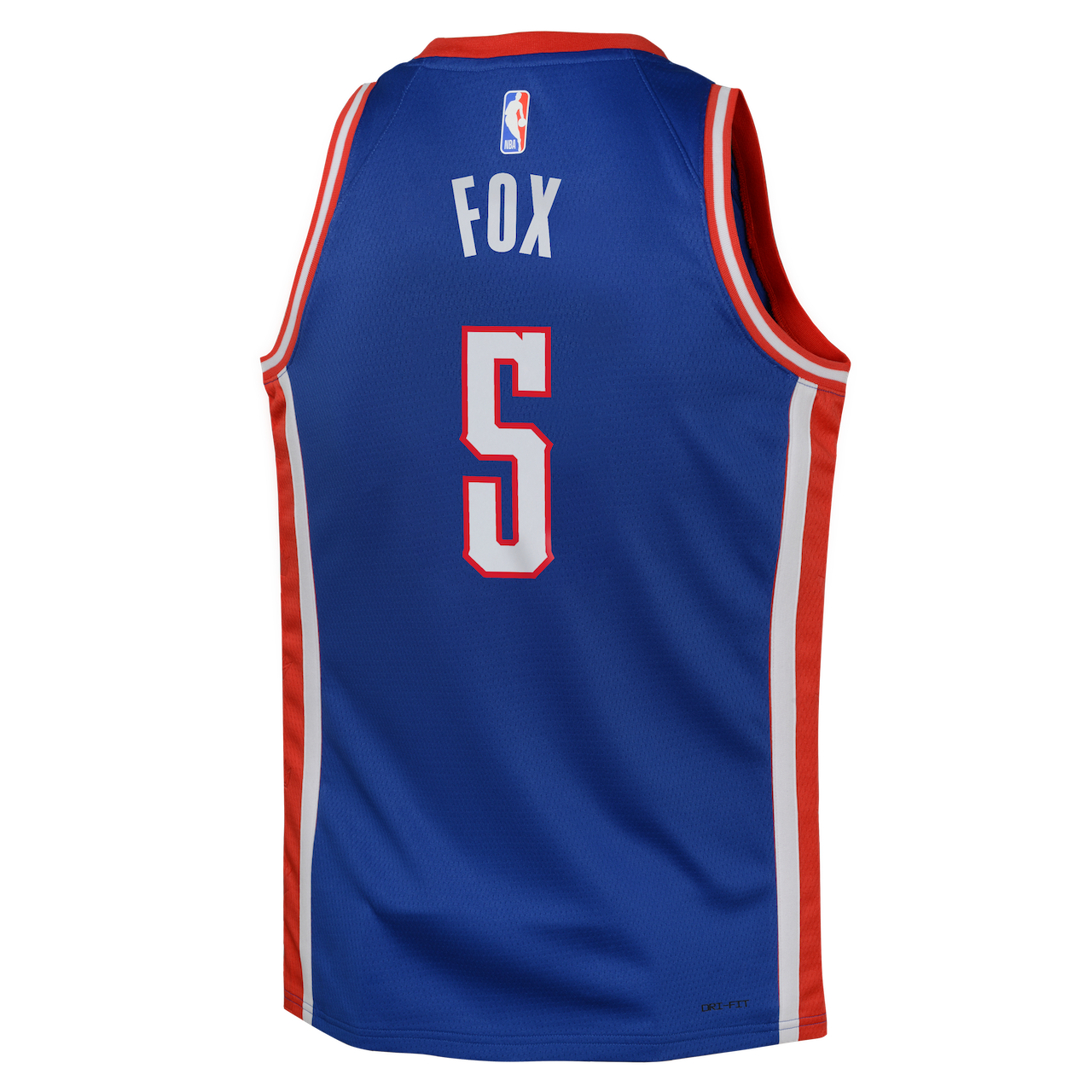 Have your little ballers rep their squad and cheer on their favorite star with the De'Aaron Fox Sacramento Kings 2024-25 City Edition Swingman Youth Nike NBA Jersey. which features sweat-wicking double-knit fabric that is lightweight yet durable - designed specifically to help keep the little ballers cool. heat applied twill name and numbers with no stitch as well as design details that demonstrate your love for the game!