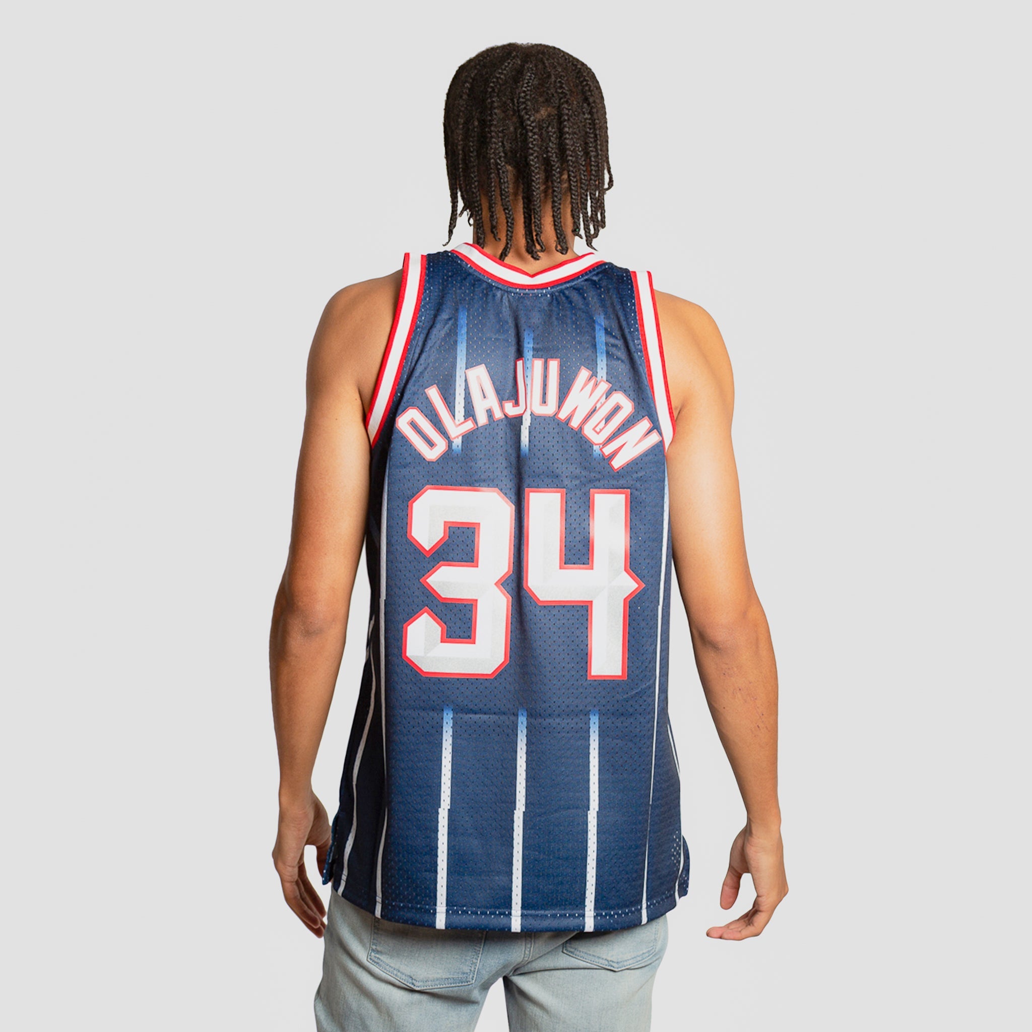 Inspired by the jerseys worn by the legends of the NBA. this NBA Hardwood Classic Blue / Navy Pinstripes Swingman jersey is constructed to resemble the way Hakeem The Dream Olajuwon wore his jersey during the 1996-1997 season with the Houston Rockets. Whether it's playing an evening pickup game or wearing to your favorite team's next matchup. this jersey is crafted with a wearable everyday fit. featuring screen-printed twill embellishments and a mesh body for breathability throughout activity. This jersey is sized for men; women may need to size down accordingly based on length and fit.