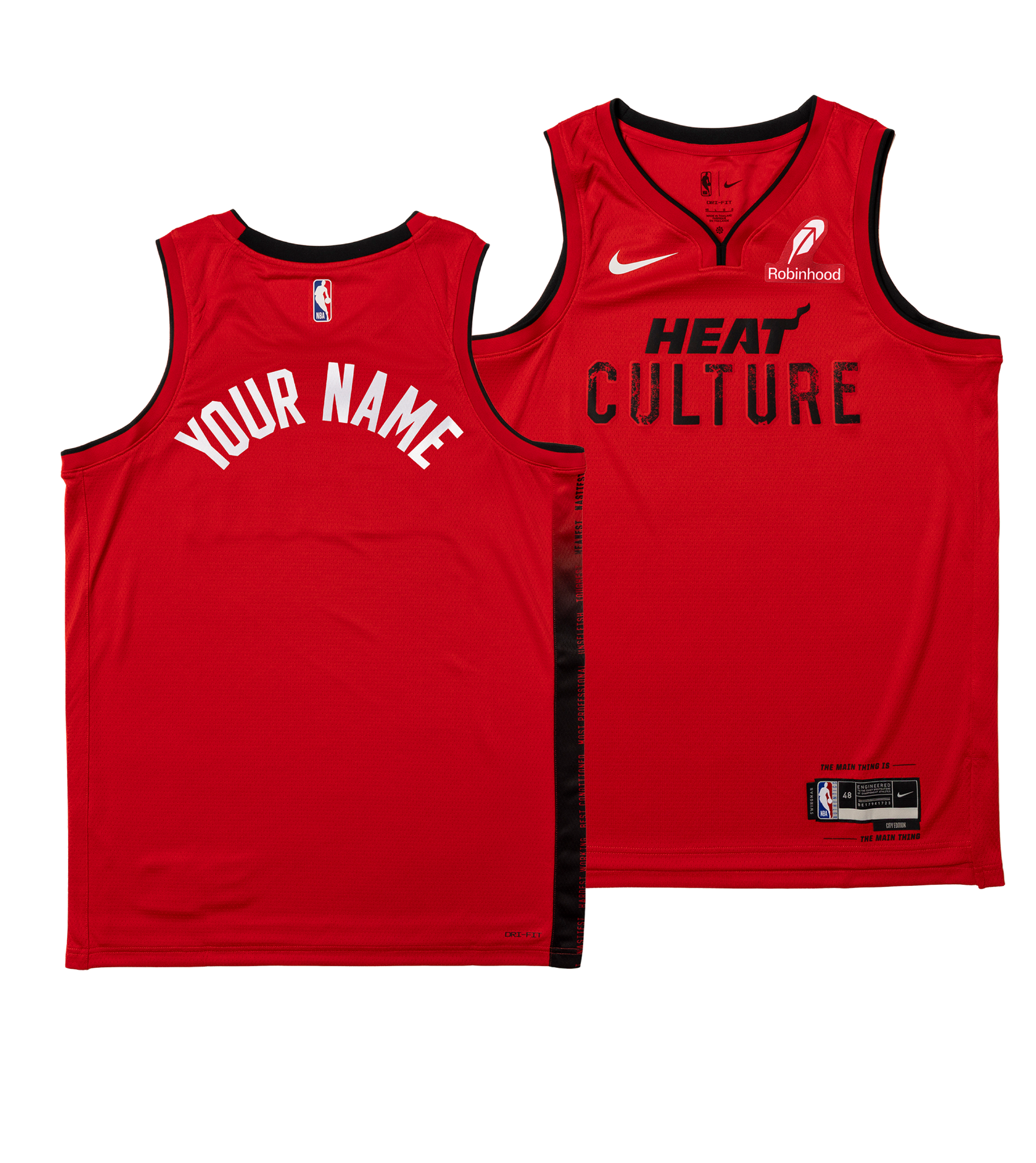 A color flip of 2023-24's HEAT Culture uniform. the 2024-25 edition retains all the elements of its predecessor. save for the base color: a Blood Red hue honoring the transformative. win-at-all-costs mentality of HEAT Culture's architect. Pat Riley. And the symbolism extends to the totality of HEAT history. throughout which red has been donned during Championship-clinching games. record-breaking win streaks. and other moments that retrace HEAT Culture's rise from new norm to ingrained standard. Because it's one thing to set that standard—it's another to live it; to bear the scars and embrace the stakes; to literally. unapologetically Bleed HEAT Red.