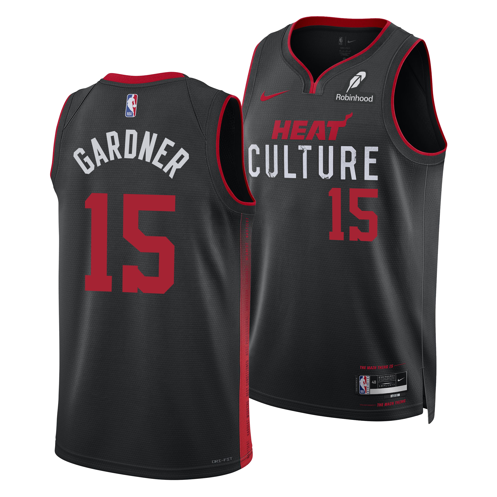 A black-colored base allows key ethos-inspired elements to shine. starting with the jersey's namesake: the HEAT Culture wordmark. featuring the team's standard HEAT stacked atop its weathered. war-torn Culture emblem. in use since 2016.