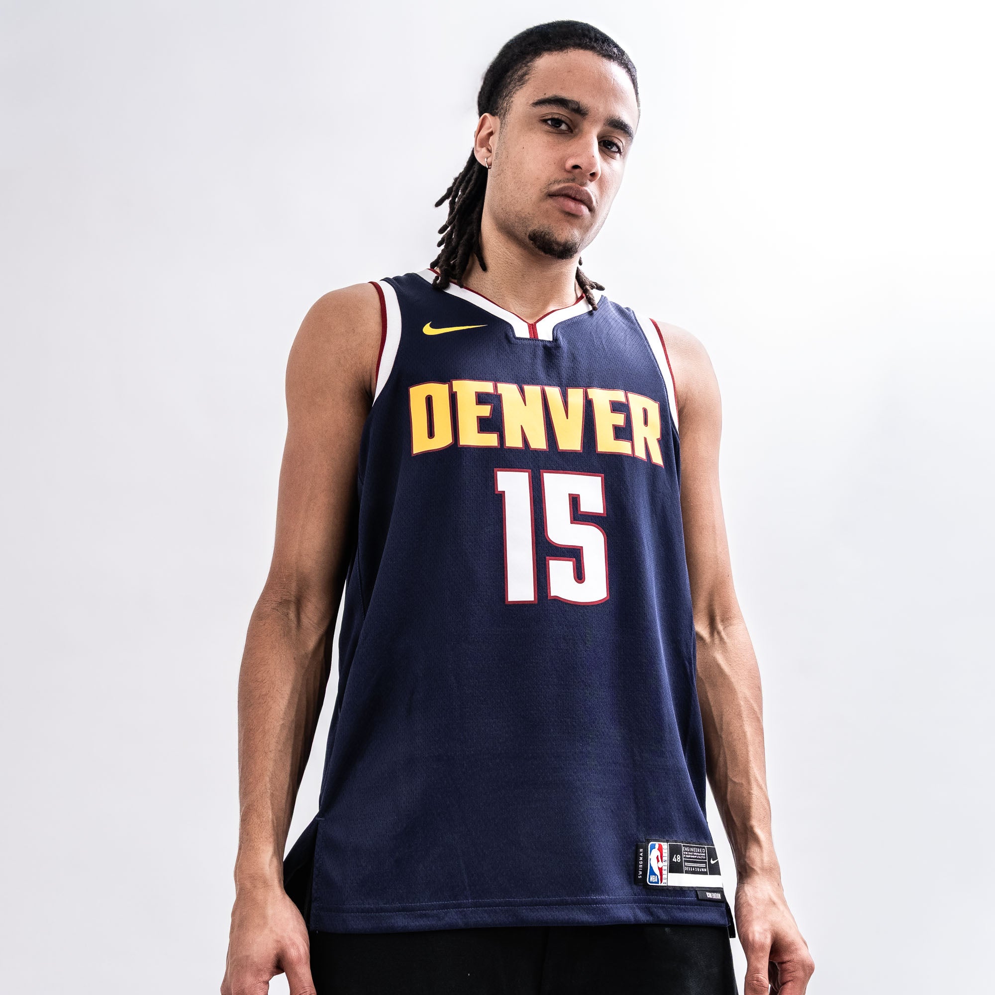 The Icon Edition jersey represents the franchise's rich heritage and iconic identity. expressed through the team's bold colors. The Nike NBA Icon Edition Swingman Jersey of the Denver Nuggets is inspired by what the pros wear. Premium double-knit fabric has a classic jersey construction and a fit that looks great on fans. This product is made with 100% recycled polyester fibers.