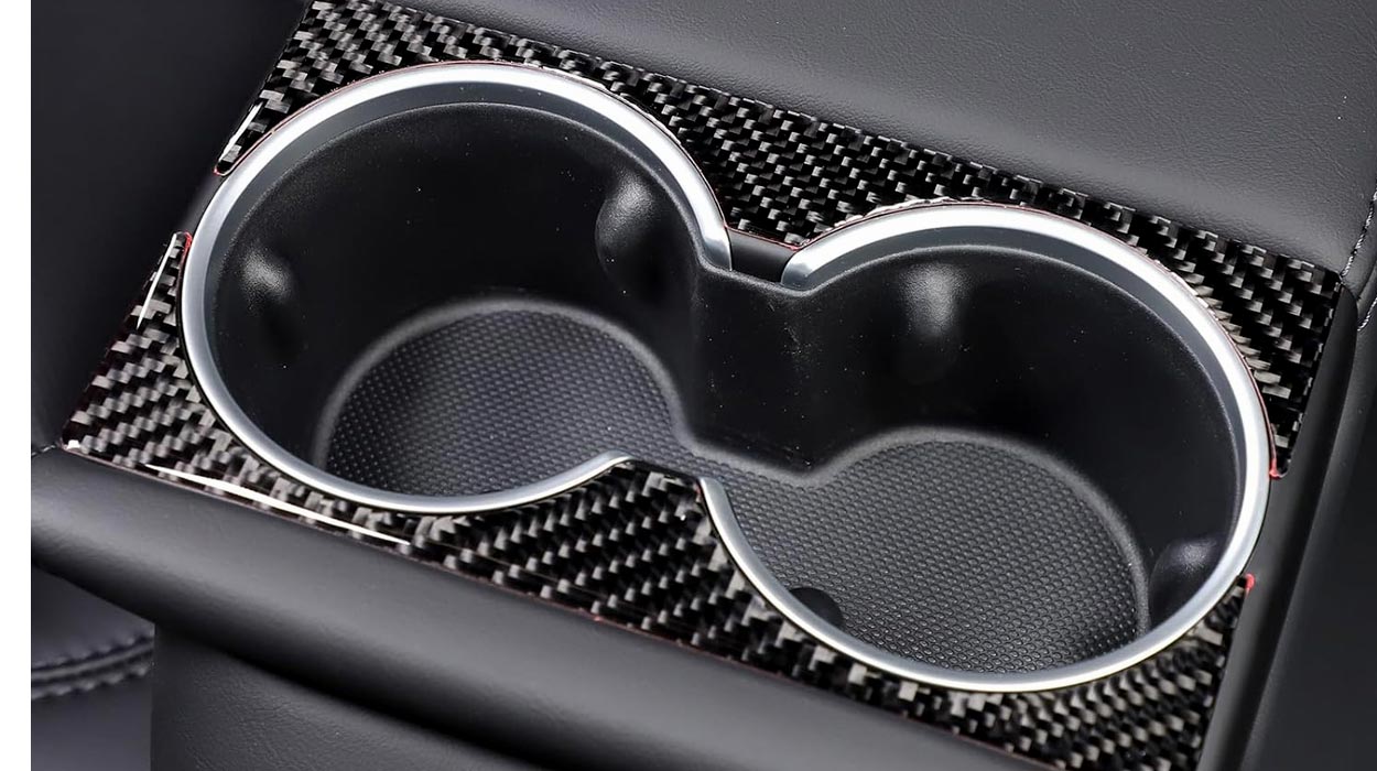 - Crafted from high-quality carbon fiber. the rear armrest cup holder trim ensures premium durability and texture. Its robust construction offers effective protection. resistant to wear. deformation. and breakage.