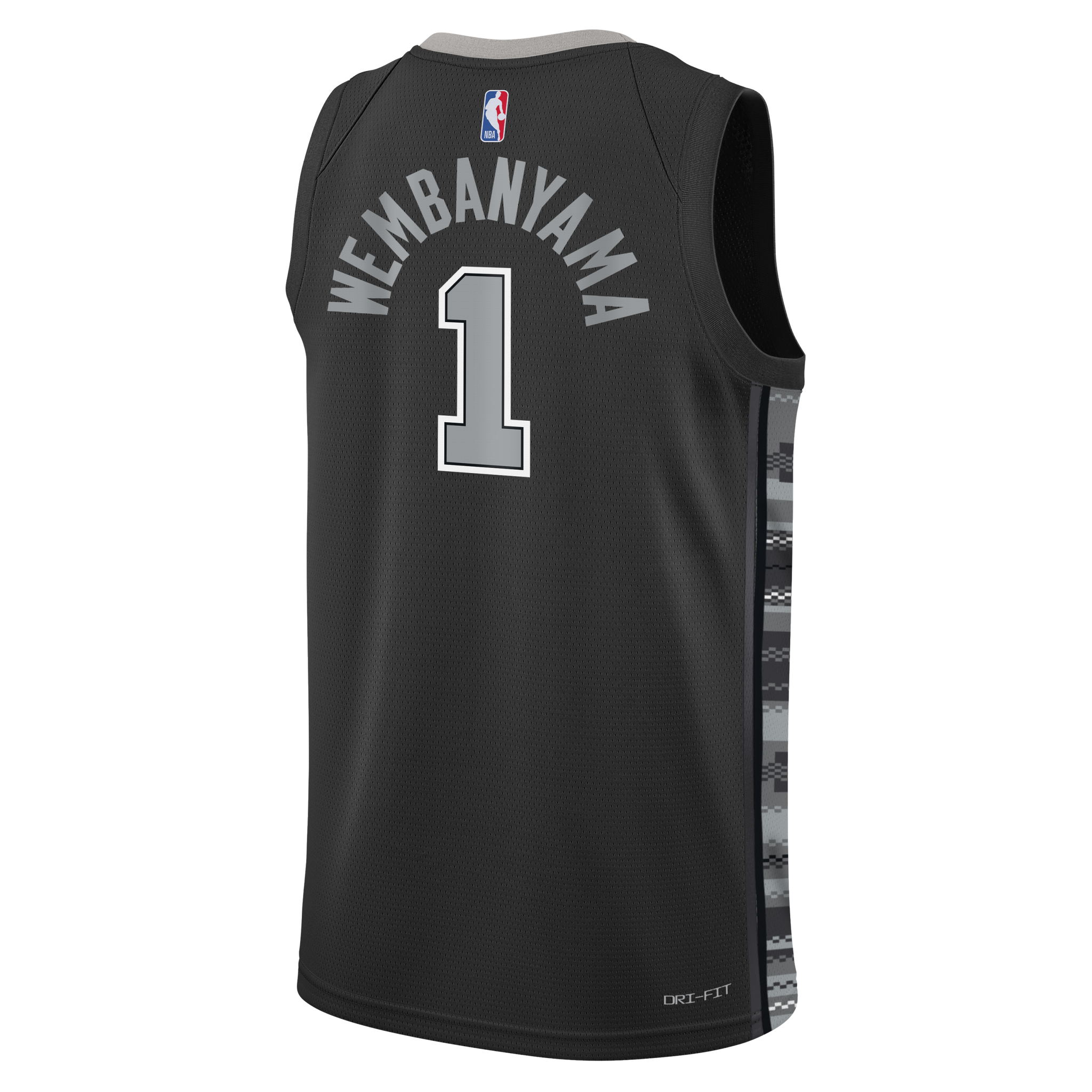 Have your little ballers rep their squad and cheer on their favorite star with the Victor Wembanyama San Antonio Spurs 2024-25 Statement Edition Swingman Youth Nike NBA Black Jersey. which features sweat-wicking double-knit fabric that is lightweight yet durable - designed specifically to help keep the little ballers cool. heat applied twill name and numbers with no stitch as well as design details that demonstrate your love for the game!