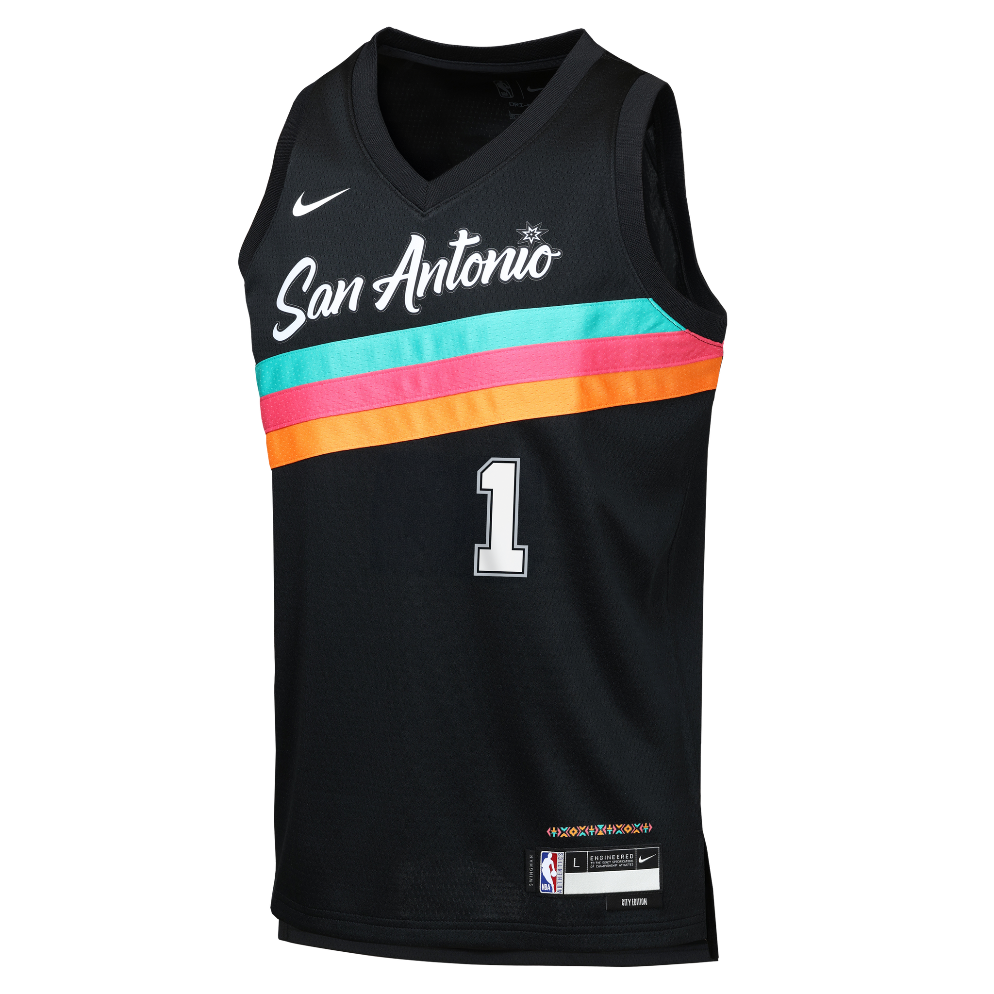 Have your little ballers rep their squad and cheer on their favorite star with the Victor Wembanyama San Antonio Spurs 2025-26 City Edition Swingman Youth Nike NBA Black Jersey. This jersey features sweat-wicking double-knit fabric that is lightweight yet durable - designed specifically to help keep the little ballers cool. heat applied twill name and numbers with no stitch as well as design details that demonstrate your love for the game!