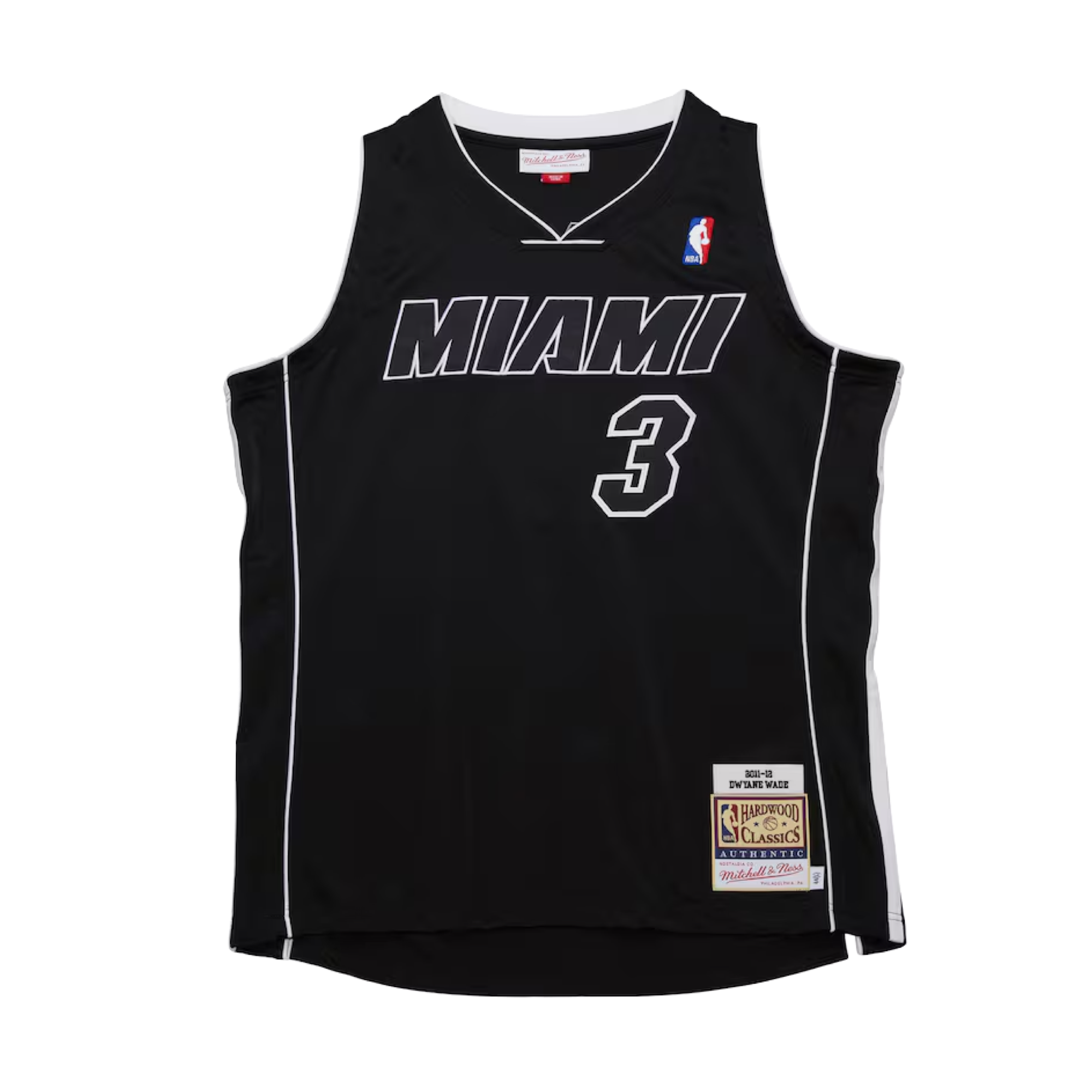 Rep your favorite Miami HEAT player in throwback style with this Dwyane Wade 2011/12 Alternate Authentic Jersey. The meticulously embroidered logos proudly display your allegiance to the team. while the sewn-on retro details and trims pay tribute to the iconic franchise's legacy. Every stitch on this jersey is tailored to exact team specifications. delivering outstanding quality and a premium feel.