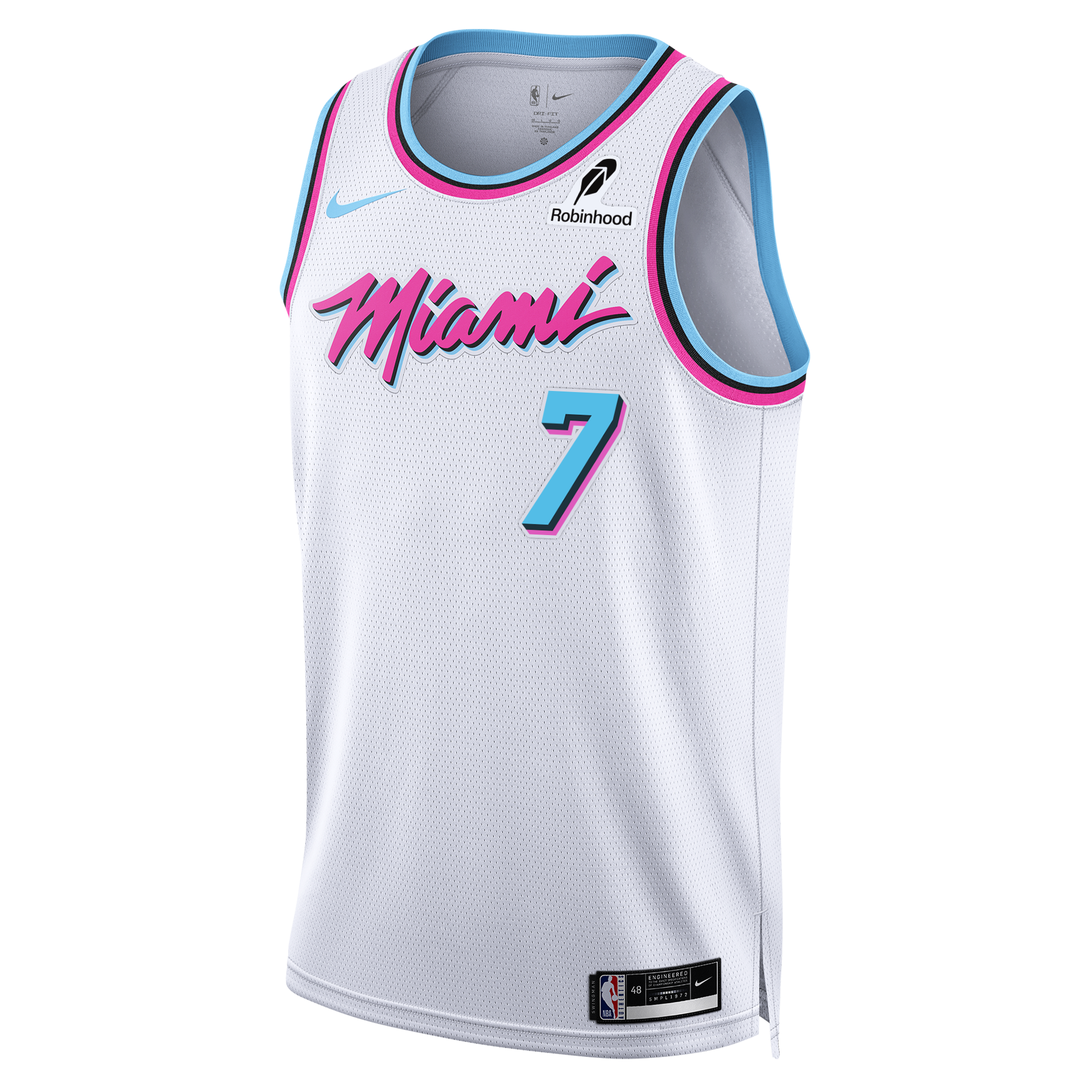 Before the 2017-18 NBA season. the Miami HEAT—tasked with designing its first-ever City Edition uniform—asked a simple question: What if 1988 never ended? The answer would lead to the creation of one of the most iconic. sought-after sports uniforms ever: Vice. Featuring a white base. pink-and-blue accents. and a quintessentially '80s MIAMI wordmark (lifted directly from the old Miami Arena marquee). the uniform became an instant classic beloved by HEAT diehards and global fashionistas alike. And now—six seasons. four follow-ups. and countless knock-offs later—The Original Vice returns to grace the HEAT hardwood once again. this time with its own court. a new roster and an undisputed legacy as one of the greatest City Edition uniforms of all time.