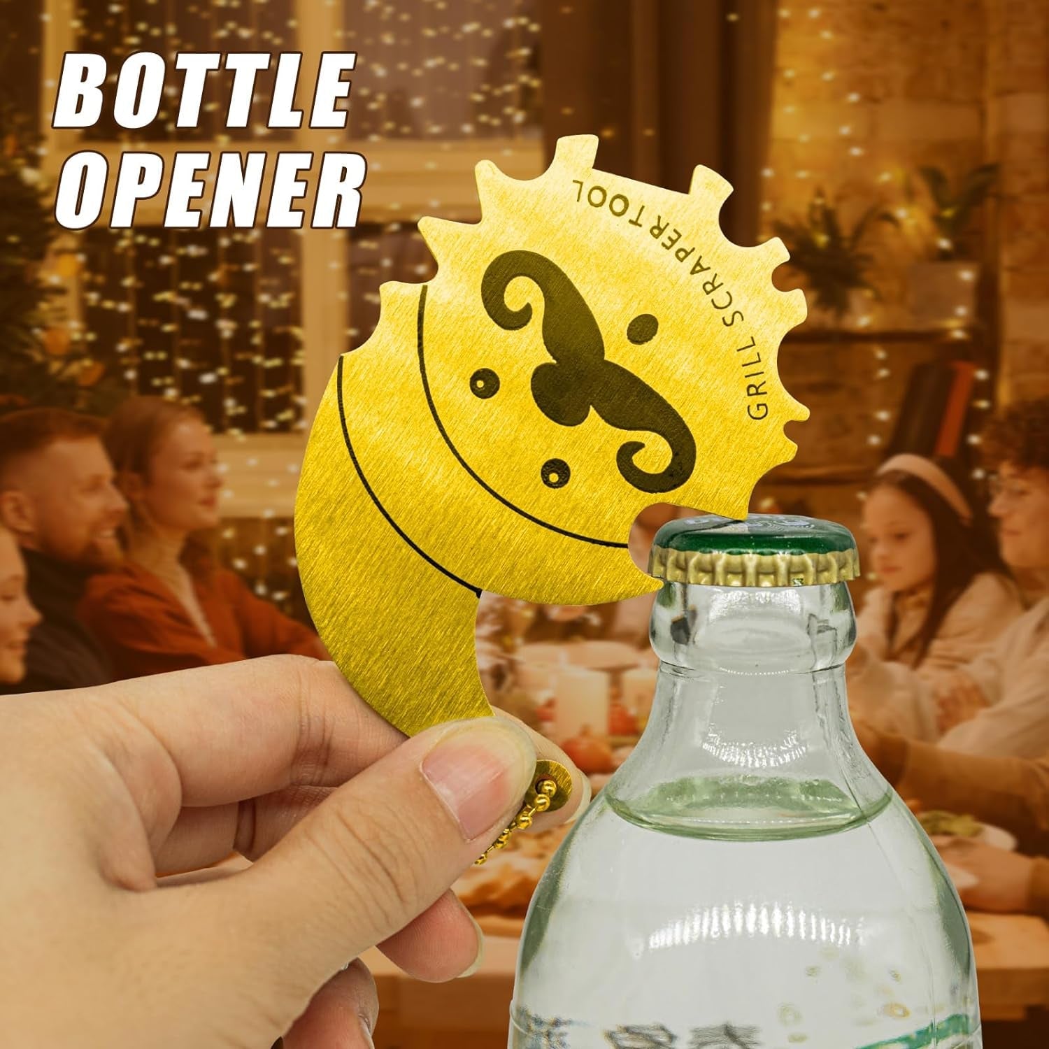 - Versatile and Universal: This product includes a built-in bottle opener. conveniently allowing you to open beers. sodas. and more. Its stainless steel construction ensures resistance to rust. and it is dishwasher safe. Available in two colors. gold and silver. this versatile tool is a must-have for any grilling enthusiast.
