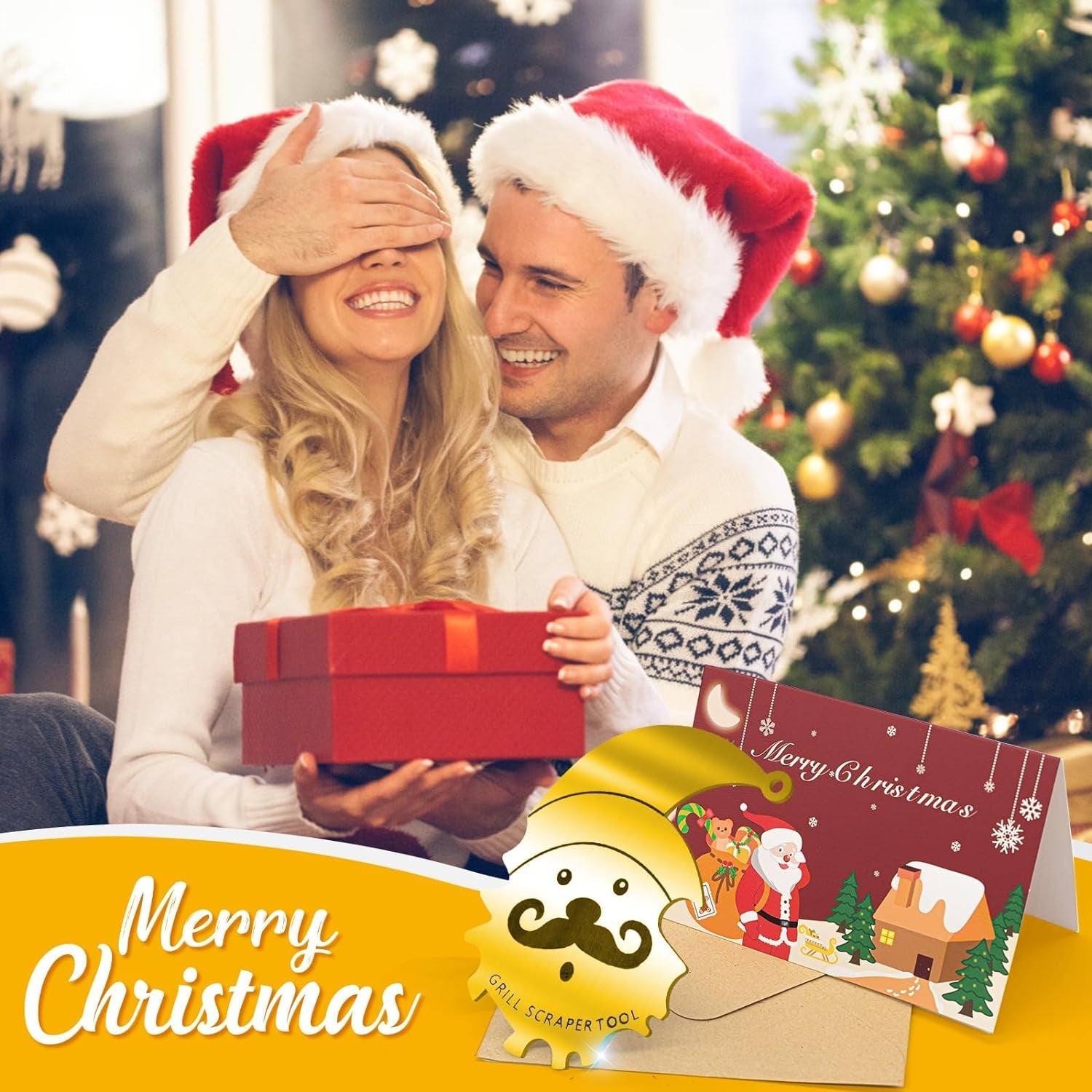- Gift Set: Includes 1 Grill Scraper. 1 Hang Chain. 1 S Hook. 1 Christmas Card. Hang the chain on your Christmas tree for unique decorations or use it as a women's stocking stuffer. This set makes a perfect gift for someone special. expressing your love and good wishes.